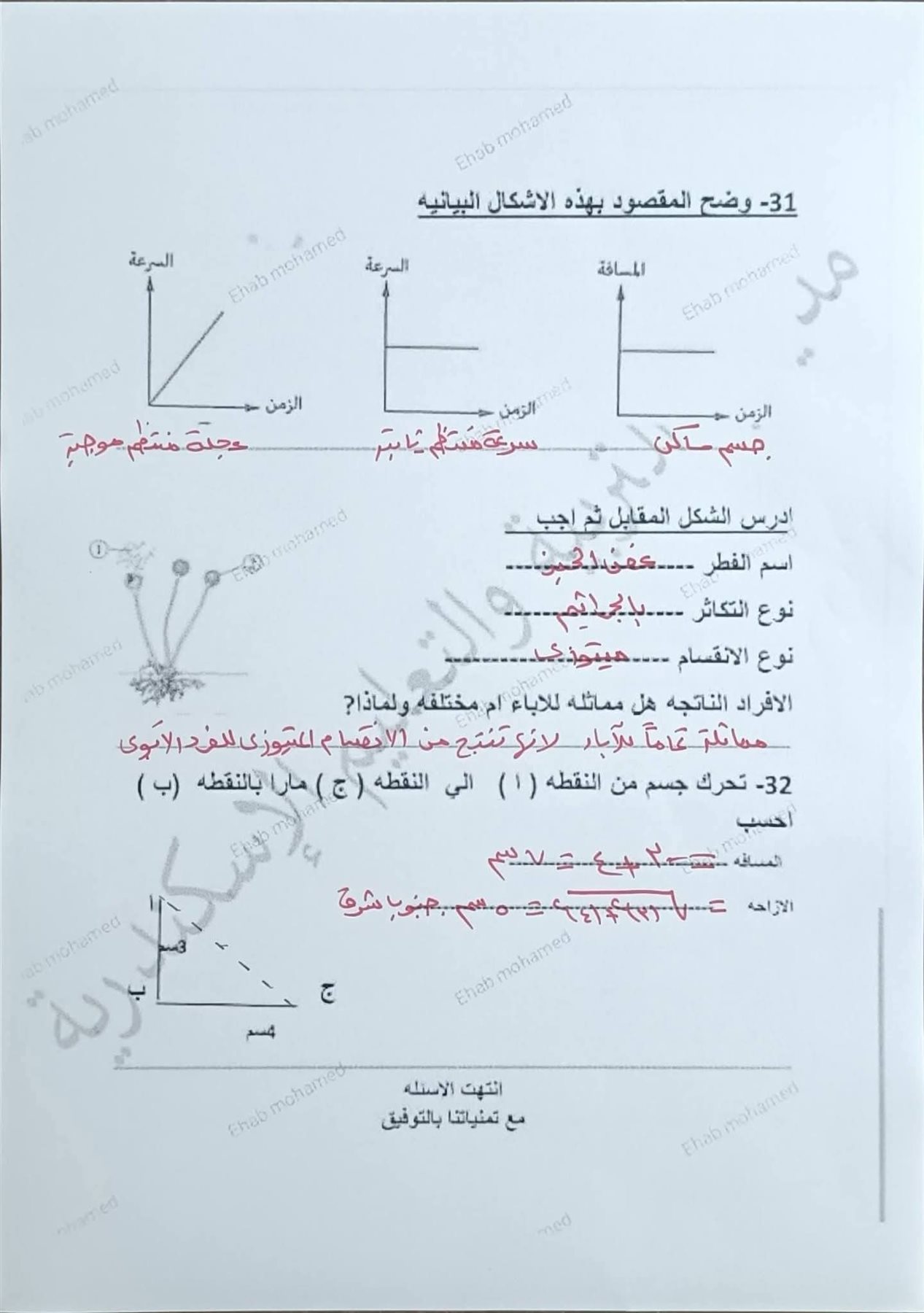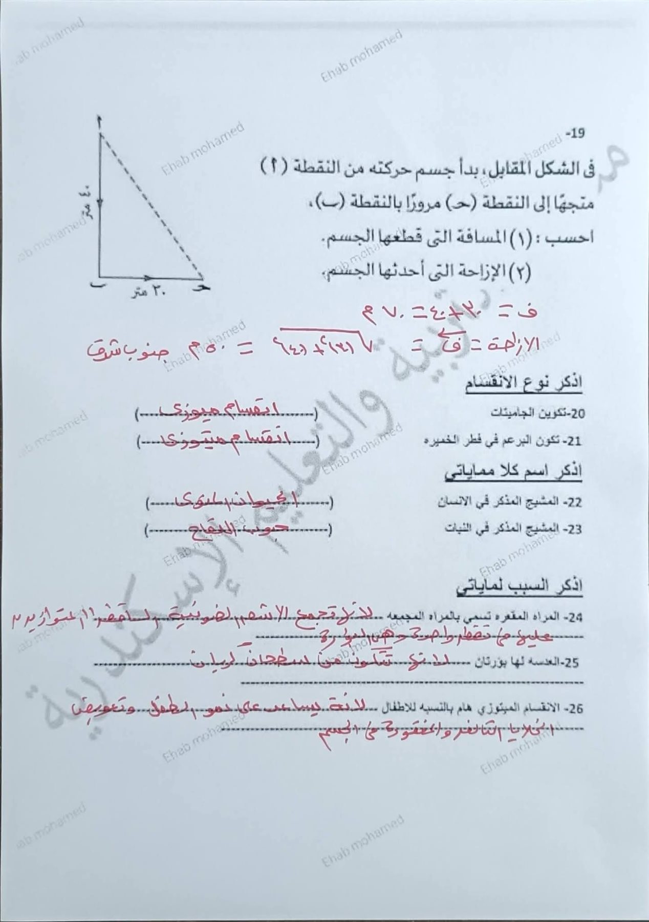 حل نموذج امتحان العلوم للشهادة الإعدادية ترم أول 2026