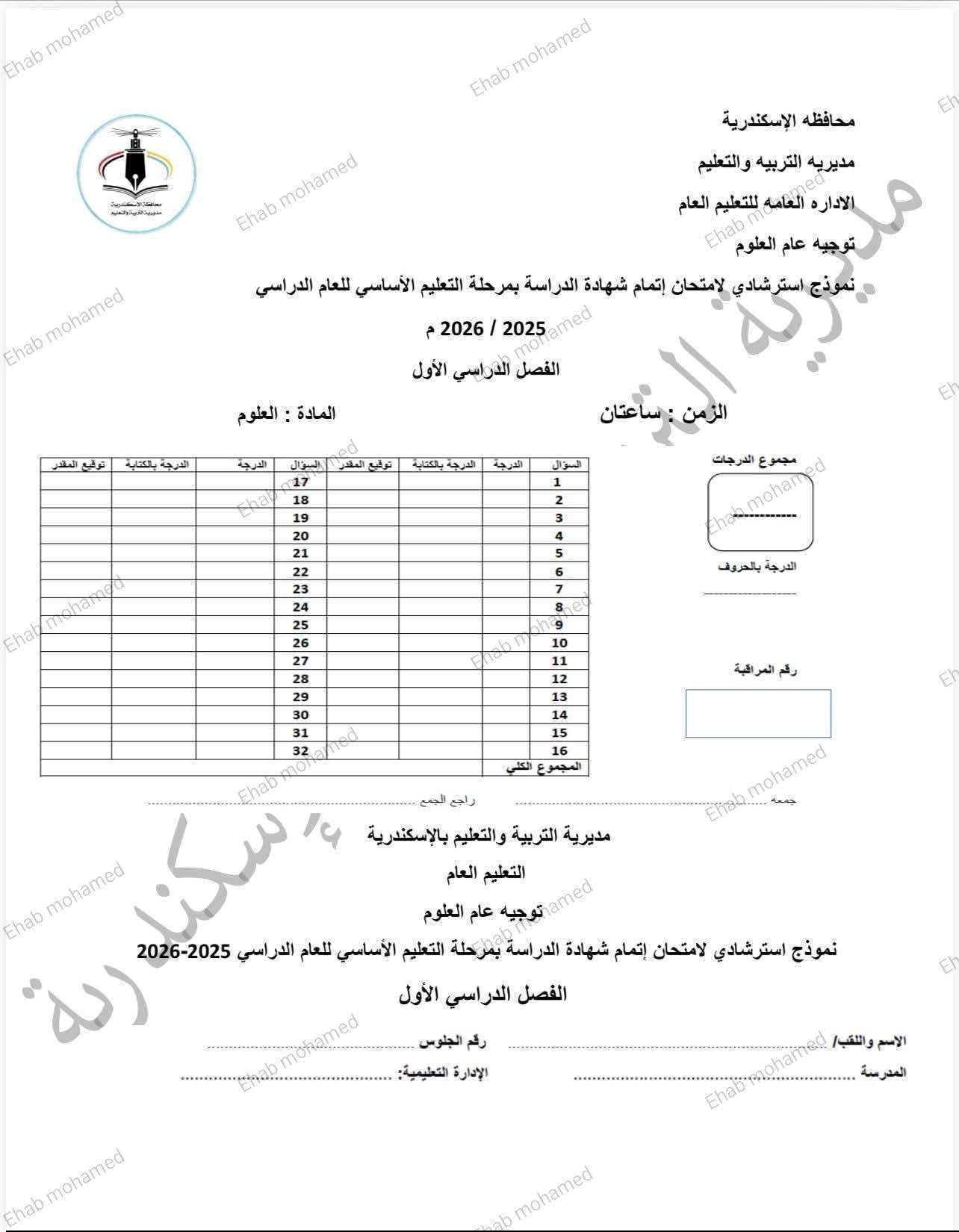 كما يمكن الحصول على إجابة نموذج امتحان مادة العلوم لتالته إعدادي ترم أول 2026، من خلال متابعة التقرير التالي، الذي ينشر أسئلة النموذج وإجاباتها.