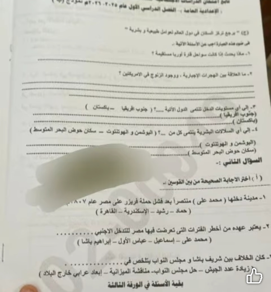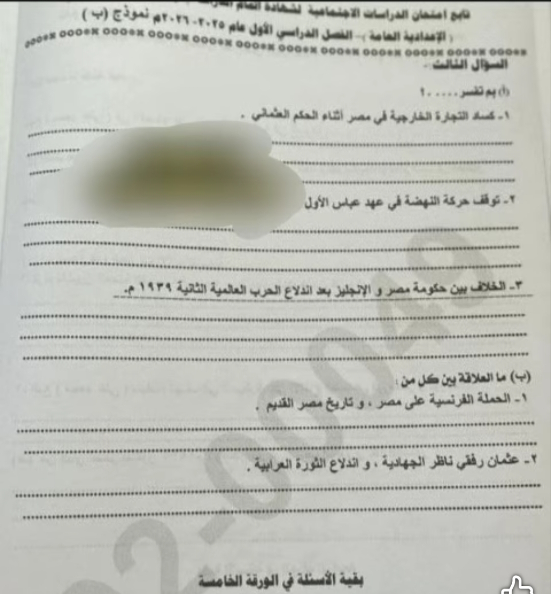 - إجابة امتحان الدراسات للشهادة الإعدادية 2026