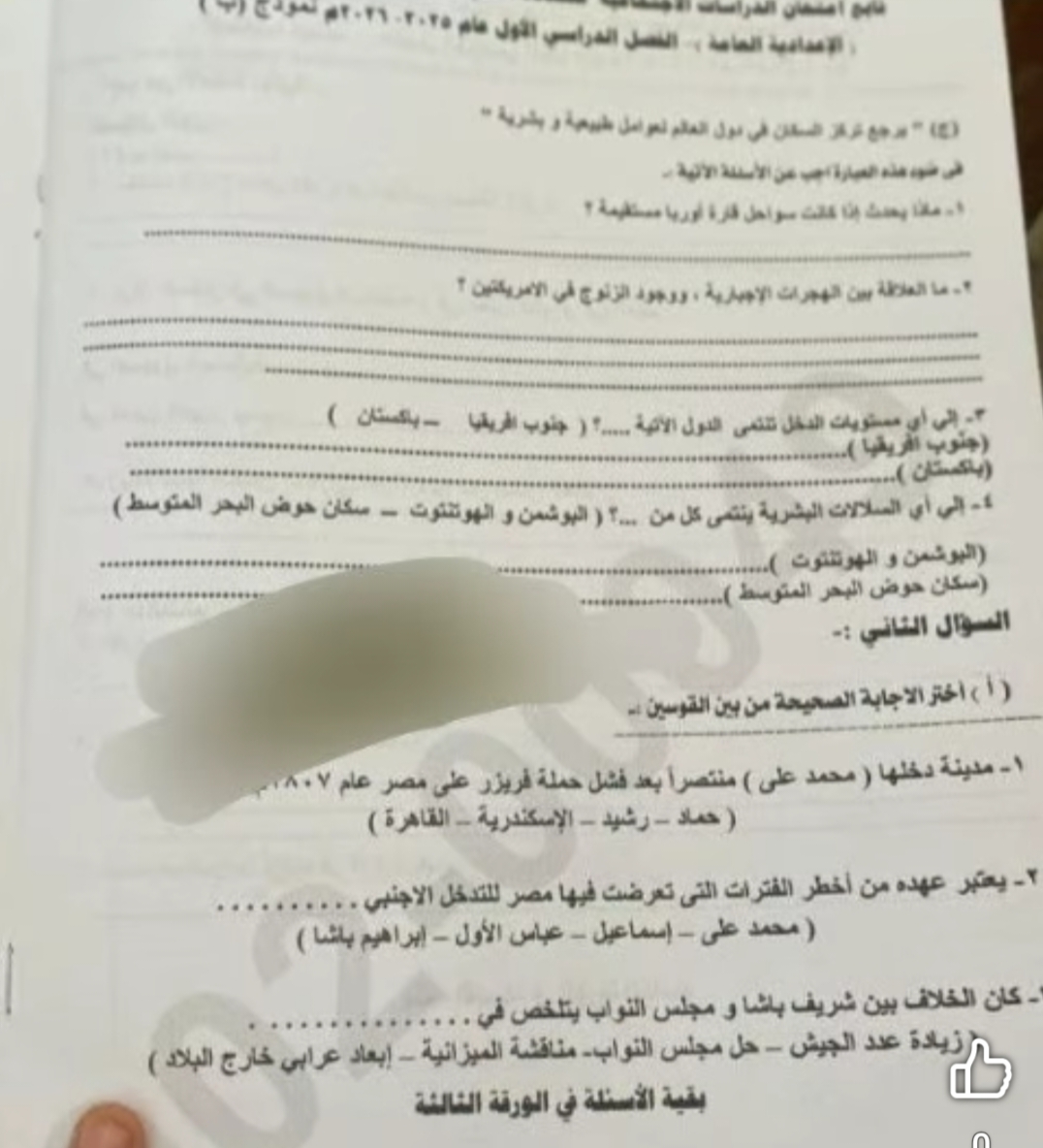 - امتحان الدراسات للشهادة الإعدادية الترم الأول 2026