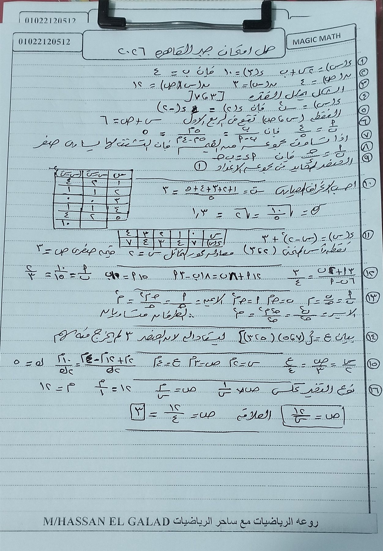 - حل امتحان الجبر