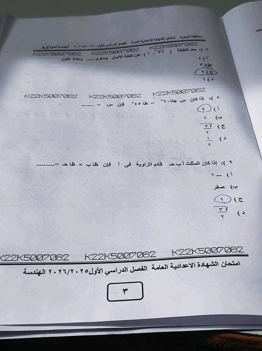 حل امتحان مادة الهندسة للشهادة الإعدادية الترم الأول 2026 البحيرة