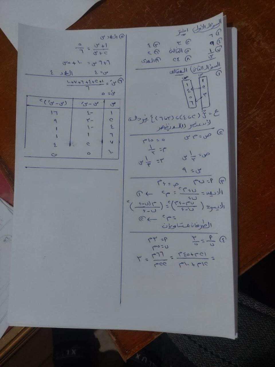 - امتحان الجبر والإحصاء