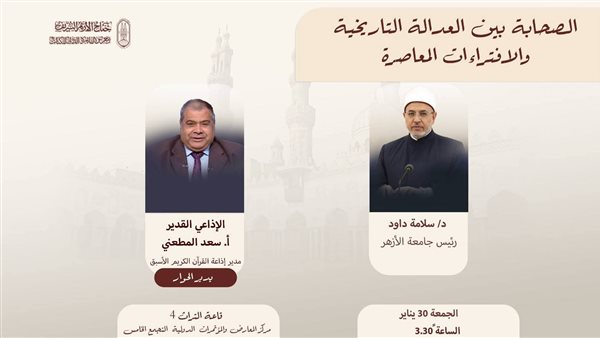 ينظم جناح الأزهر الشريف بمعرض القاهرة الدولي للكتاب، في دورته السابعة والخمسين، يوم الجمعة ندوتين، في إطار في إطار مناقشة مكانة السنة النبوية في التشريع الإسلامي والعدالة التاريخية للصحابة ونشر الفكر الإسلامي الوسطي.