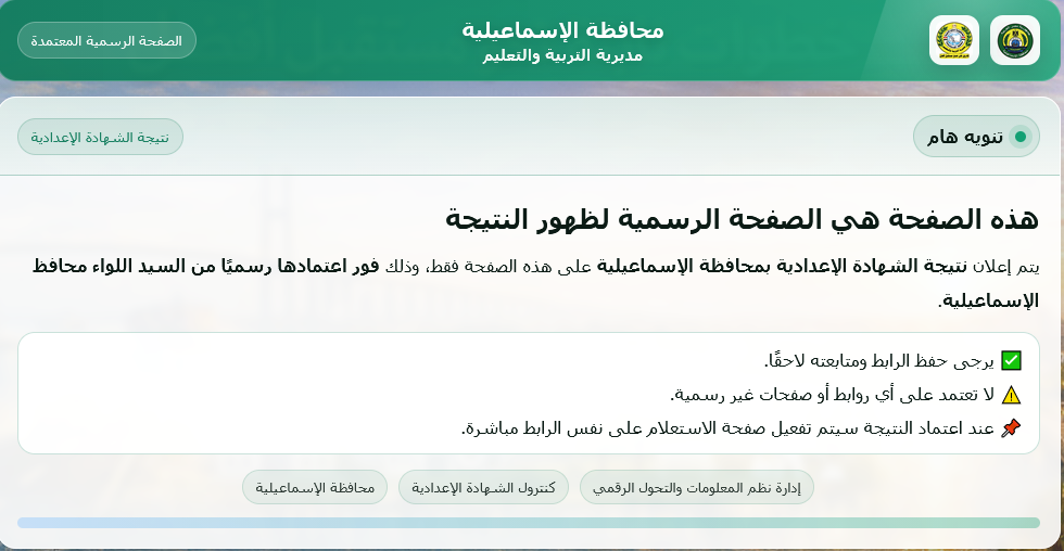 - رابط نتيجة الشهادة الإعدادية 2026 محافظة الإسماعيلية