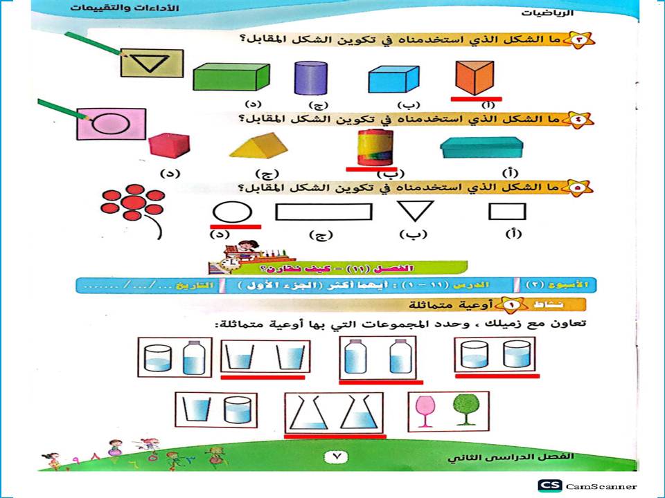 - إجابة تقييمات الرياضيات الأسبوع الأول لأولى ابتدائي