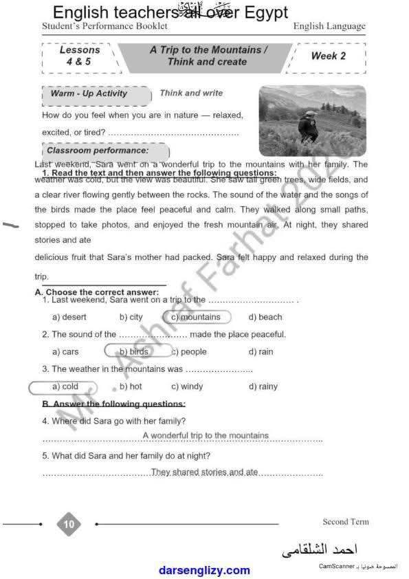 حل كتاب التقييم الصف الرابع الابتدائي انجليزي ترم ثاني 2026