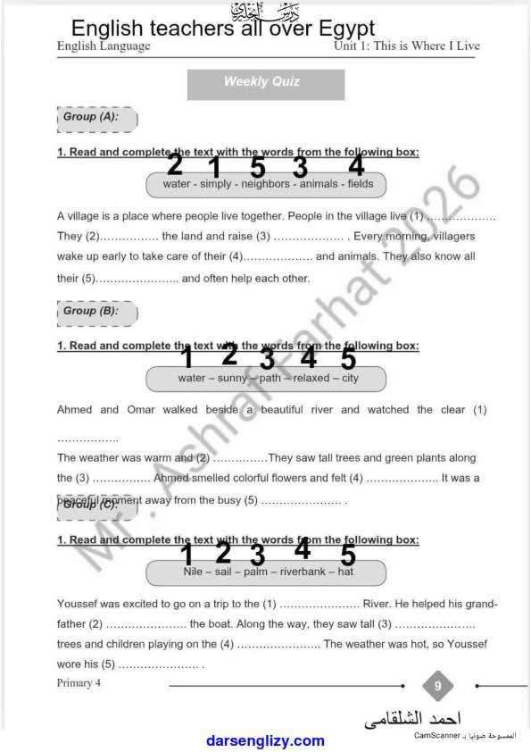 حل تقييمات مادة الإنجليزي رابعة ابتدائي 2026