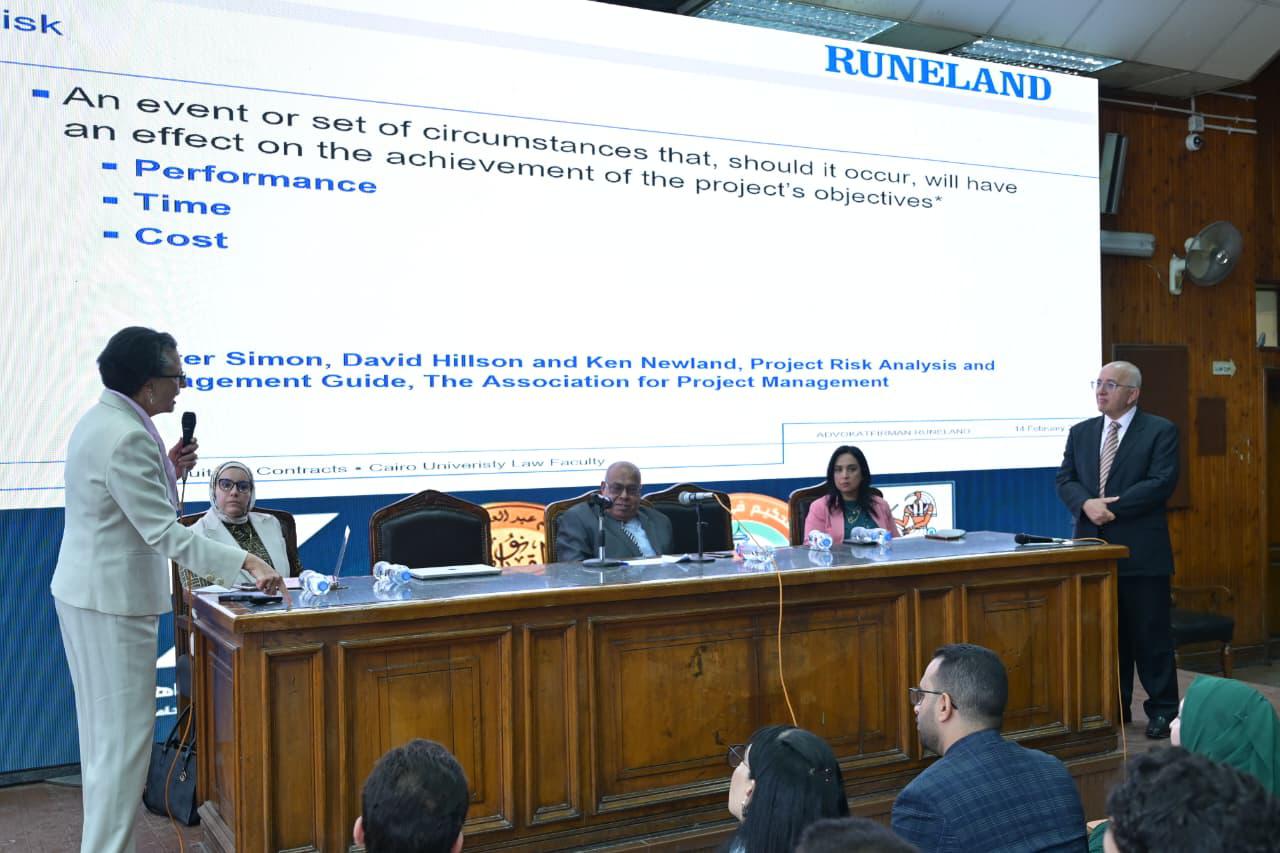 وجاءت الورشة الأولى بعنوان «صياغة العقود في مجالات الإنشاءات وعقود الفيديك ومشكلات التطبيق في مصر» برئاسة الدكتور سامي عبدالباقي أستاذ القانون التجاري ووكيل كلية الحقوق جامعة القاهرة، وبمشاركة الدكتور أحمد فتحي والي محكم قانوني وهندسي دولي كمدرب رئيسي، والدكتور سمير شعبان مدرس قسم المرافعات بكلية الحقوق جامعة القاهرة كمدرب مساعد، حيث تناولت الورشة أهم الإشكاليات العملية المرتبطة بتطبيق عقود الفيديك في السوق المصري، وآليات صياغة العقود الإنشائية بما يحقق التوازن بين أطرافها ويحد من النزاعات المحتملة.