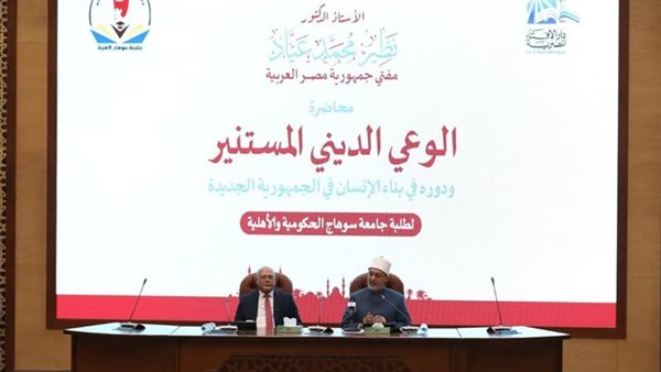 جاء ذلك خلال محاضرة فضيلته بعنوان "الوعي الديني المستنير ودوره في بناء الإنسان في الجمهورية الجديدة" لطلبة جامعة سوهاج الحكومية والأهلية، بحضور سعادة الأستاذ الدكتور حسان النعماني رئيس الجامعة، وعدد من القيادات الأكاديمية وأعضاء هيئة التدريس والطلاب، وذلك بمقر دار الإفتاء المصرية.