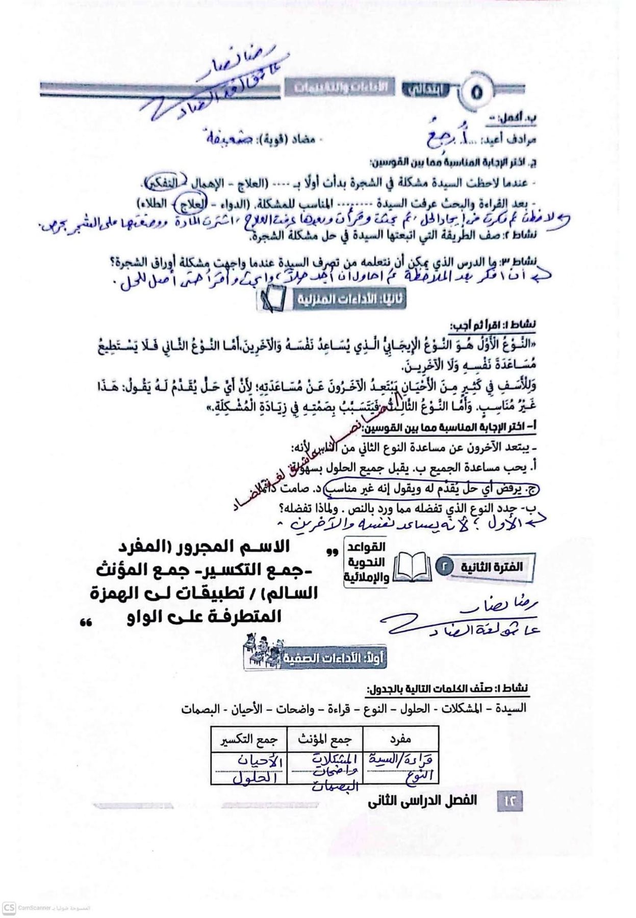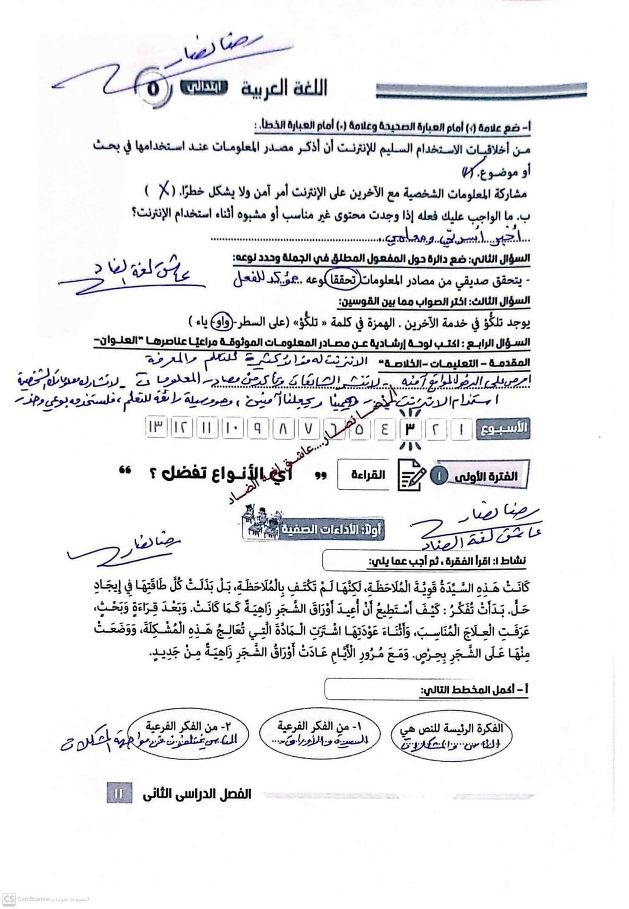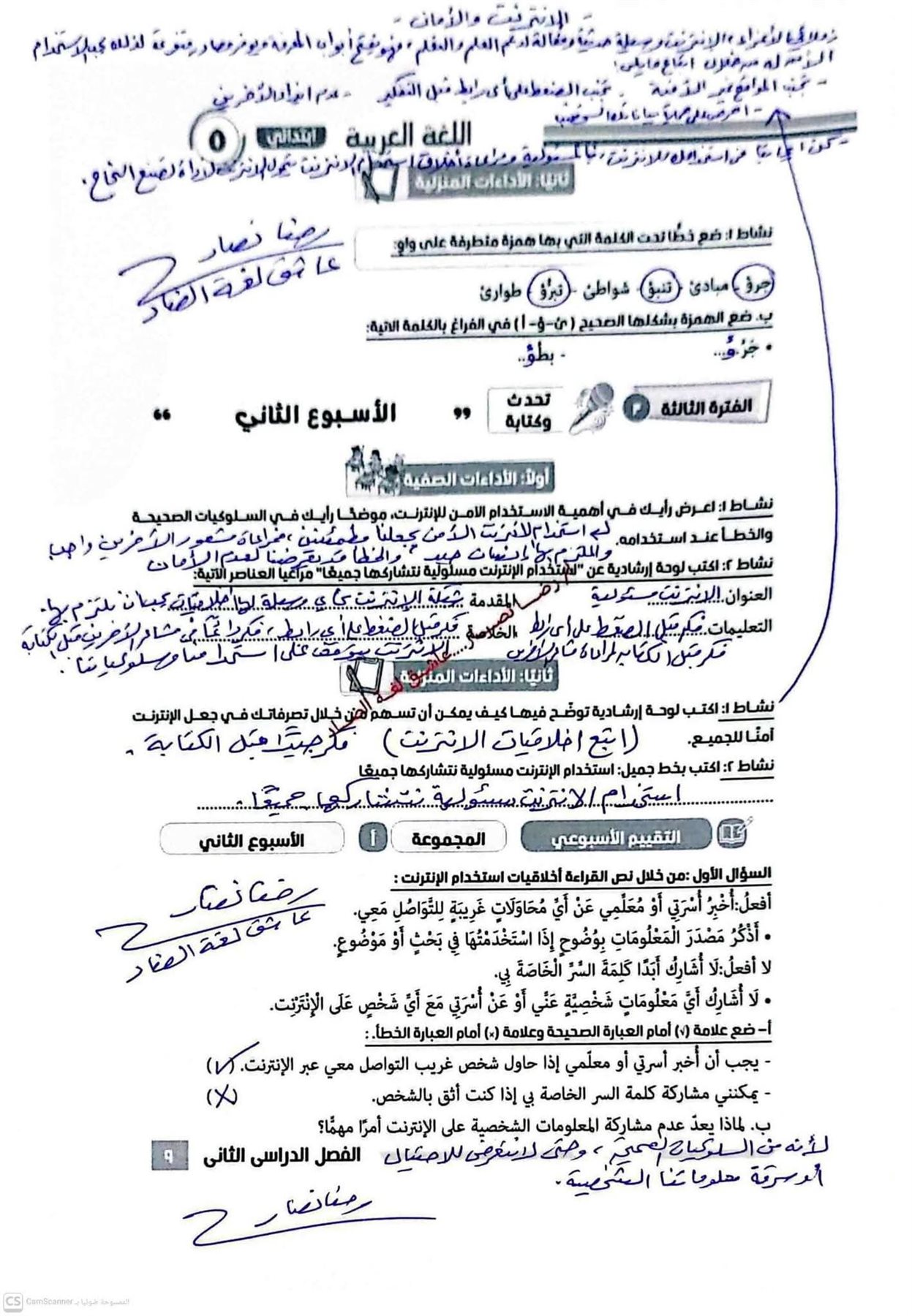 - خامسة ابتدائي عربي حل الواجب والتقييم الاسبوعي الثاني وزارة التربية والتعليم