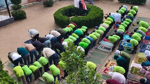 رمضان في مصر حاجة تانية.. طلاب يؤدون صلاة الظهر في فناء مدرسة ببني سويف