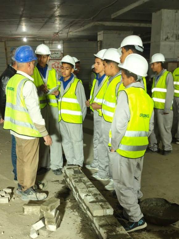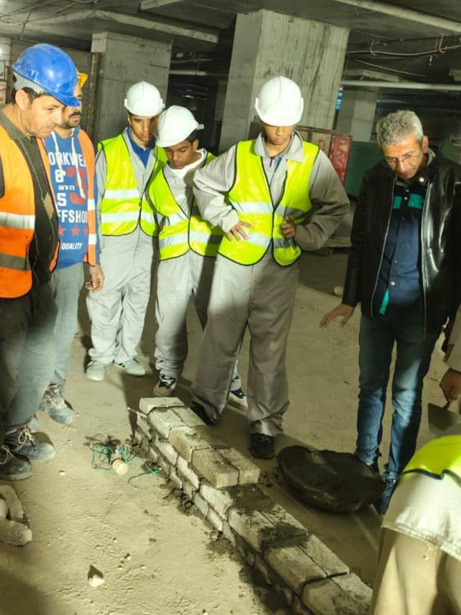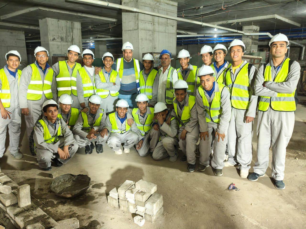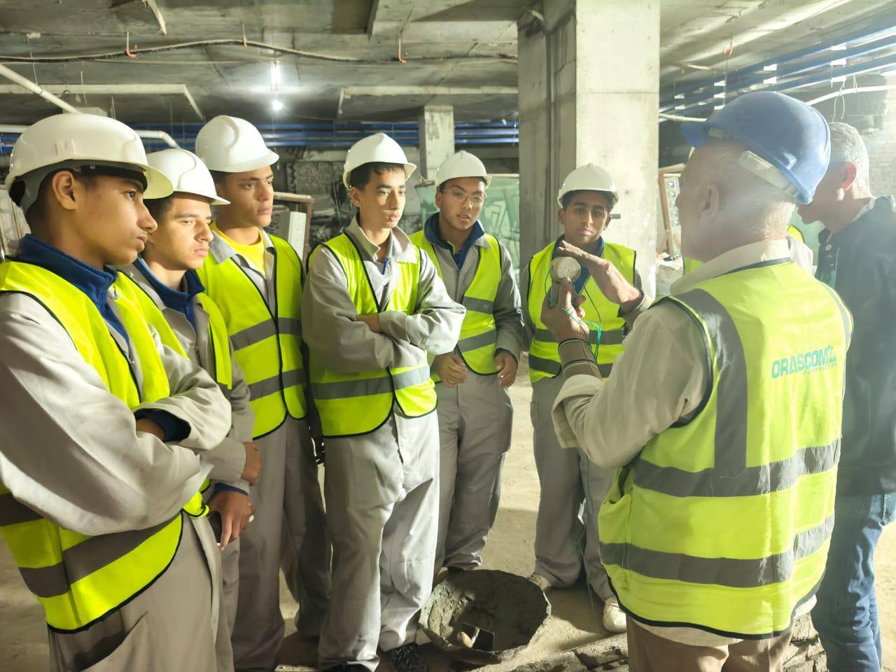 ومن خلاله يتعرف الطلاب على آليات تركيب العناصر الخرسانية مسبقة الصب (Precast Concrete)، إلى جانب الاطلاع على الأساليب الفنية المستخدمة في عزل الخرسانة العادية والمسلحة ضد الرطوبة، حيث تم تطبيق هذه المهارات عمليًا داخل موقع العمل تحت إشراف عدد من المهندسين والمتخصصين في مجال التشييد والبناء.