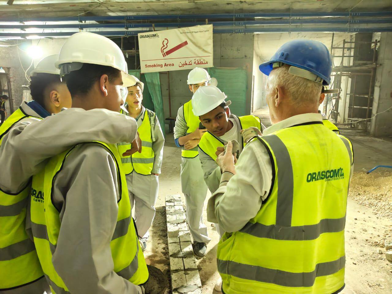 طلاب مدرسة أنسي ساويرس لتكنولوجيا الإنشاءات يشاركون بتدريب ميداني بموقع البنك المركزي