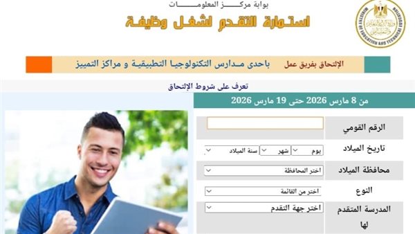 عاجل| رابط وشروط التقديم لوظائف مدارس التكنولوجيا التطبيقية 2026