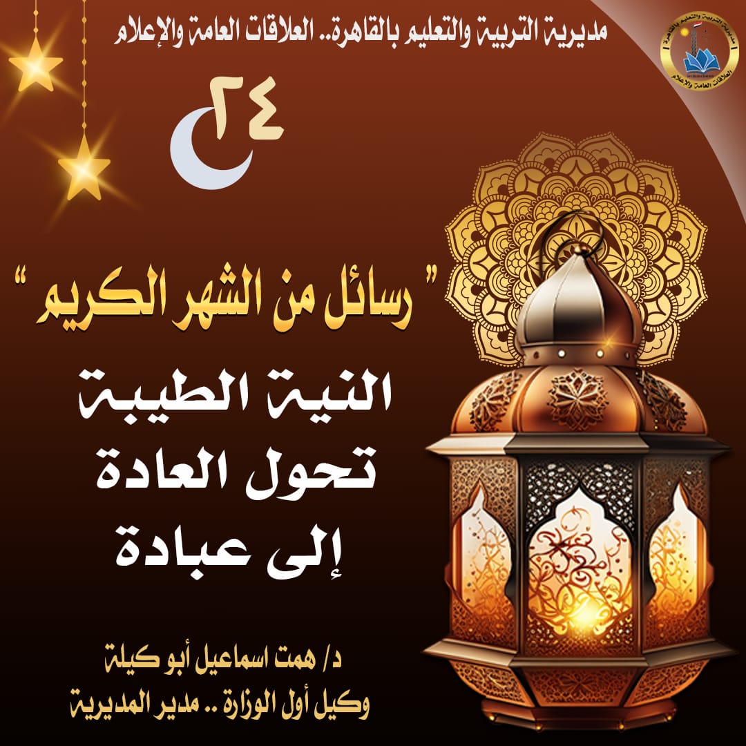 «النية الطيبة… تحول العادة إلى عبادة».. تعليم القاهرة توجه الطلاب نحو السلوكيات الصالحة خلال رمضان