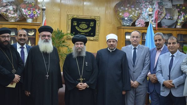 استقبل الدكتور محمد عبد المالك، نائب رئيس جامعة الأزهر للوجه القبلي، بمقر فرع الجامعة بأسيوط، نيافة الأنبا يوأنس، مطران أسيوط وتوابعها سكرتير المجمع المقدس بالكنيسة القبطية الأرثوذكسية، يرافقه وفد من قيادات الكنائس بالمحافظة؛ وذلك لتقديم التهنئة بمناسبة قرب حلول عيد الفطر المبارك.