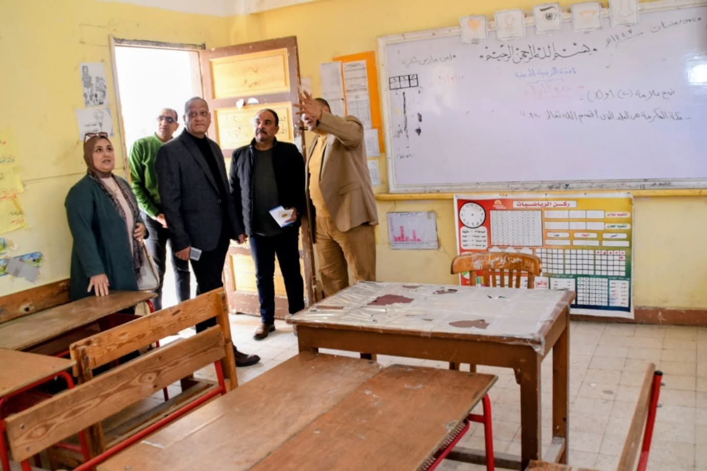 متابعة ميدانية لوكيل التعليم ببورسعيد لأعمال رفع كفاءة مدرسة أحد الابتدائية
