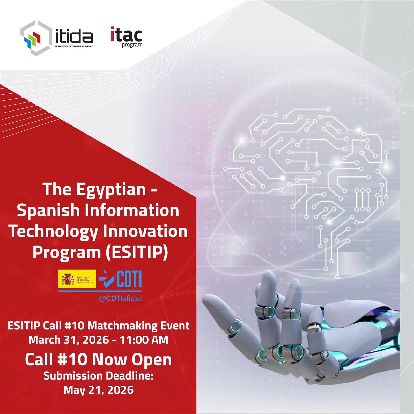 أعلنت هيئة تنمية صناعة تكنولوجيا المعلومات (إيتيدا)، بالتعاون مع مركز تطوير التكنولوجيا الصناعية في إسبانيا، عن تنظيم ورشة تعارف.
