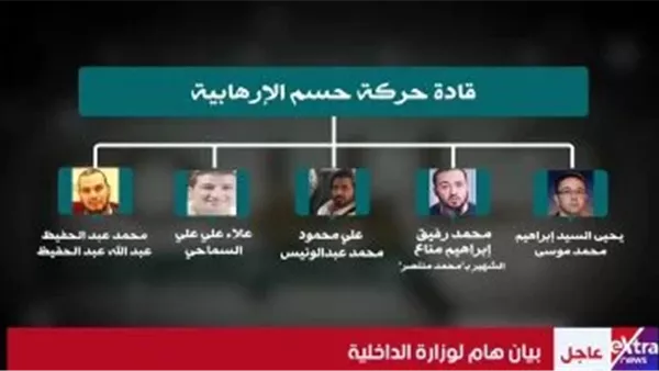 استكمالا لجهود ملاحقة عناصر حركة حسم الإرهابية التابعة لجماعة الإخوان الإرهابية، المتورطين في إعداد مخطط يستهدف الإضرار بمقدرات الدولة من خلال القيام بسلسلة من العمليات العدائية، والدفع بعضوي الحركة (أحمد محمد عبد الرزاق أحمد غنيم، إيهاب عبد اللطيف محمد عبد القادر) لتنفيذ عمليات تستهدف المنشآت الأمنية والاقتصادية بالبلاد.