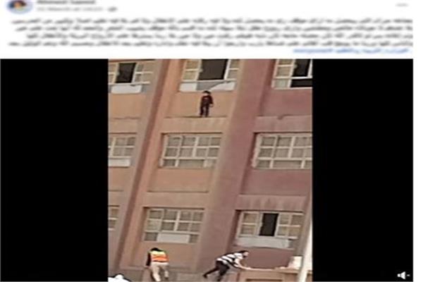 وتمكن أحد المعلمين من إنقاذ الطفل في اللحظات الأخيرة، حيث سحبه من النافذة إلى داخل الفصل، دون تعرضه لأي إصابات، في تدخل حال دون وقوع كارثة.