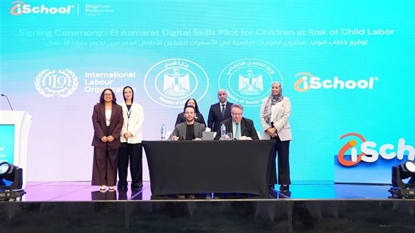 شهد وزير العمل حسن رداد، فعاليات "منتدى iSchool للمستقبل الرقمي" المنعقد بالقاهرة، للإعلان عن مشروع مشترك يجمع بين وزارة العمل، ووزارة التضامن الاجتماعي، ومنظمة العمل الدولية (ILO)، وشركة iSchool، ويستهدف تمكين الأطفال، من خلال التعليم التكنولوجي وتنمية المهارات الرقمية..بحضور،المهندسة مرجريت صاروفيم نائبة وزيرة التضامن الاجتماعي، إيريك أوشلان مدير مكتب منظمة العمل الدولية بالقاهرة، والمهندس محمد جاويش الشريك المؤسس والرئيس التنفيذي لشركة iSchool، إلى جانب ممثلين عن المنظمات الدولية والقطاع الخاص وشركاء التنمية.