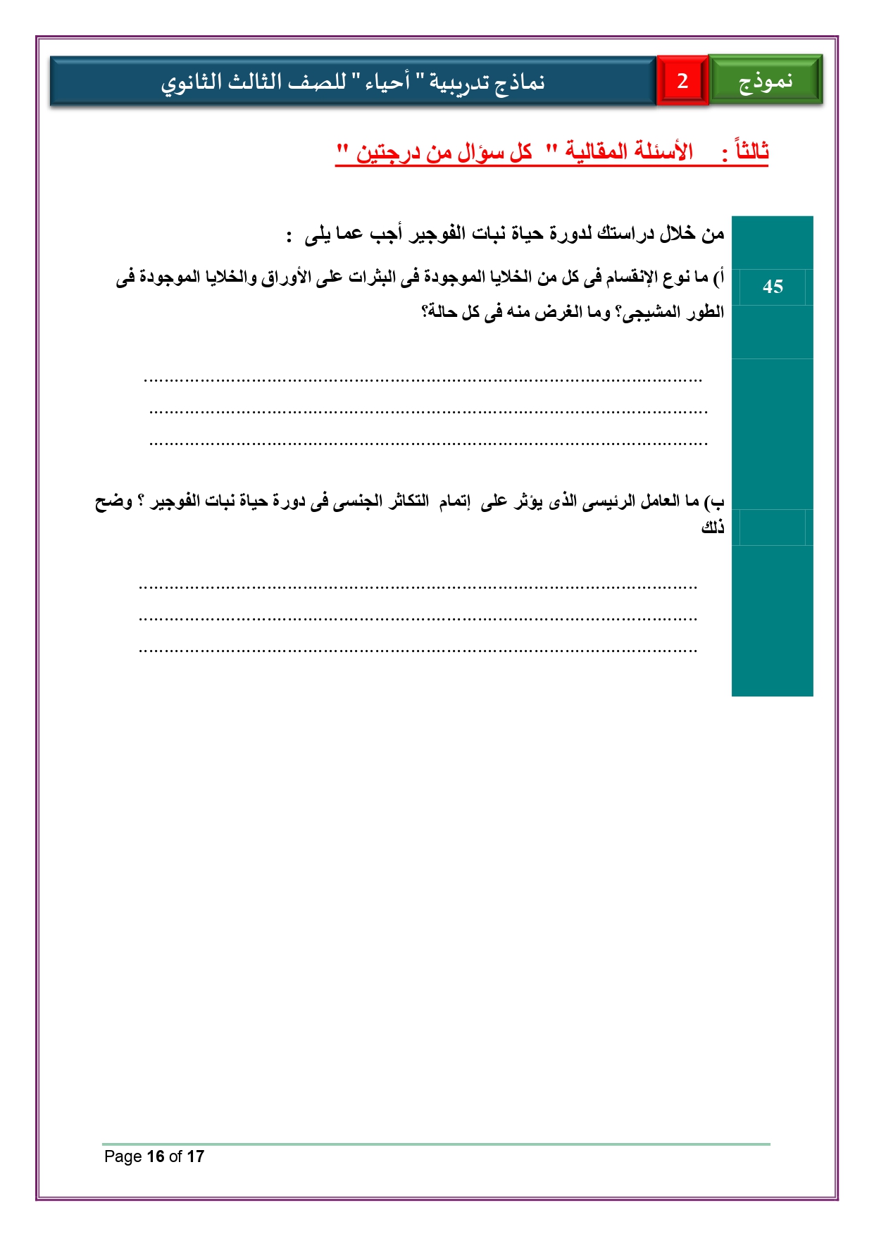 - حل نموذج الوزارة أحياء