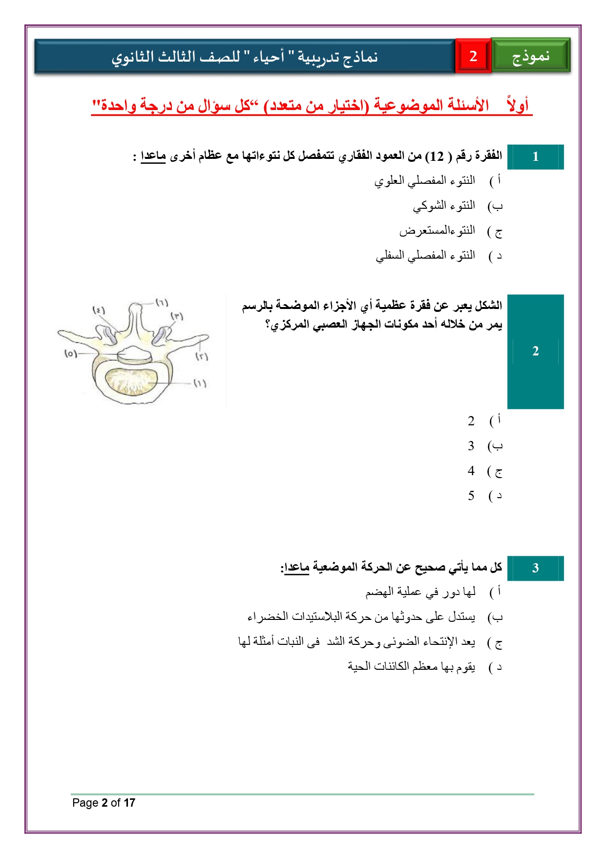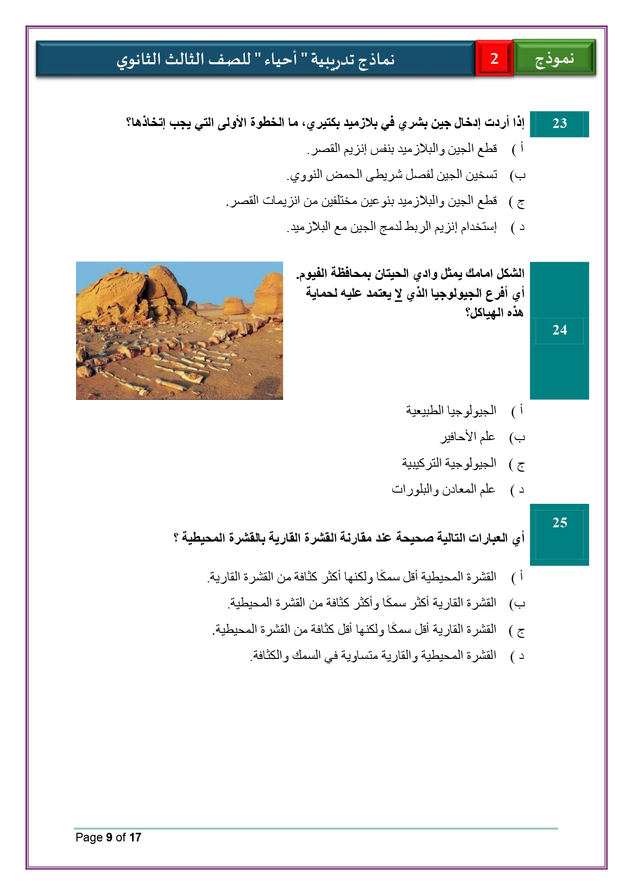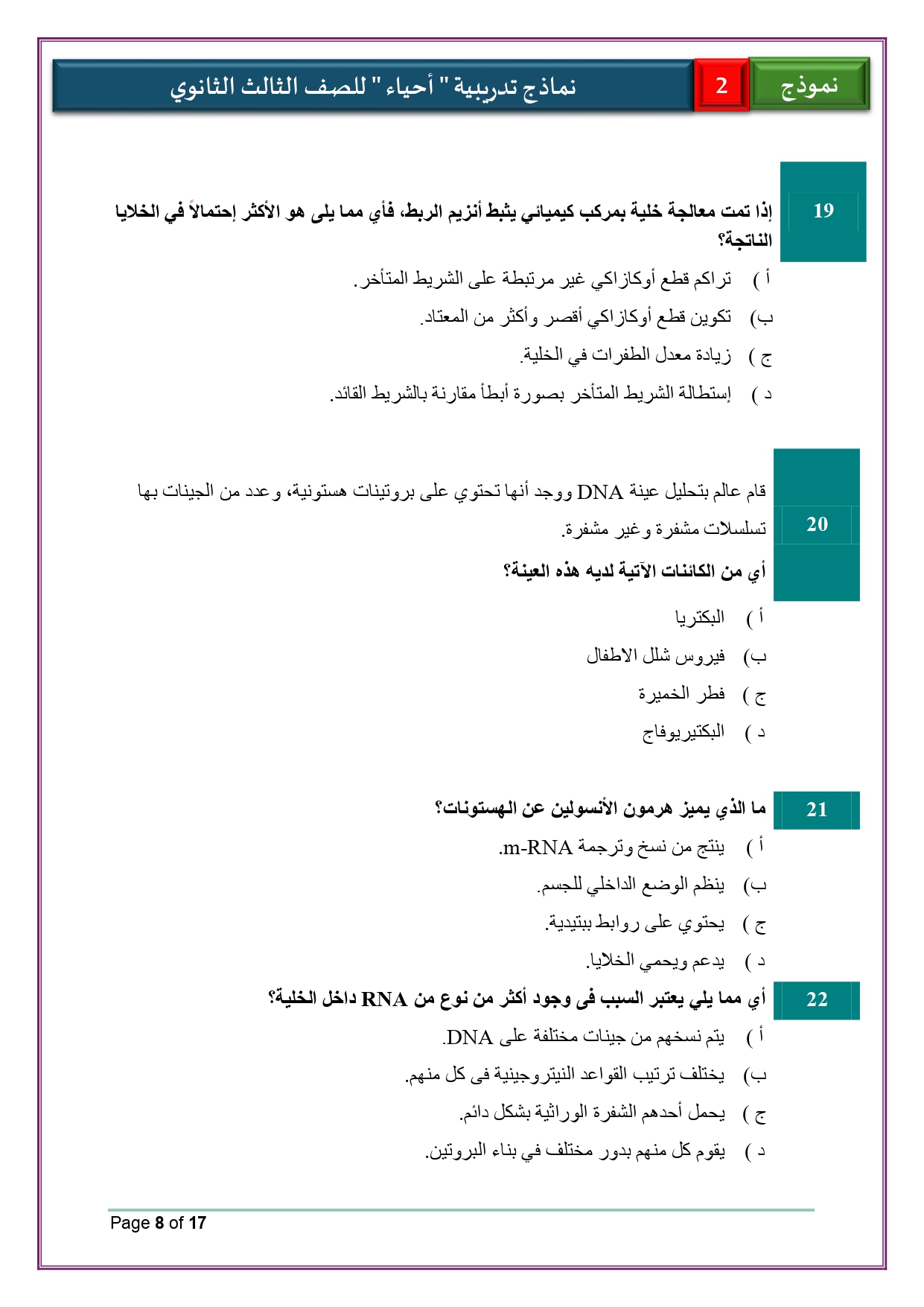 حل النموذج الاسترشادي الأول والثاني أحياء للثانوية العامة 2026
