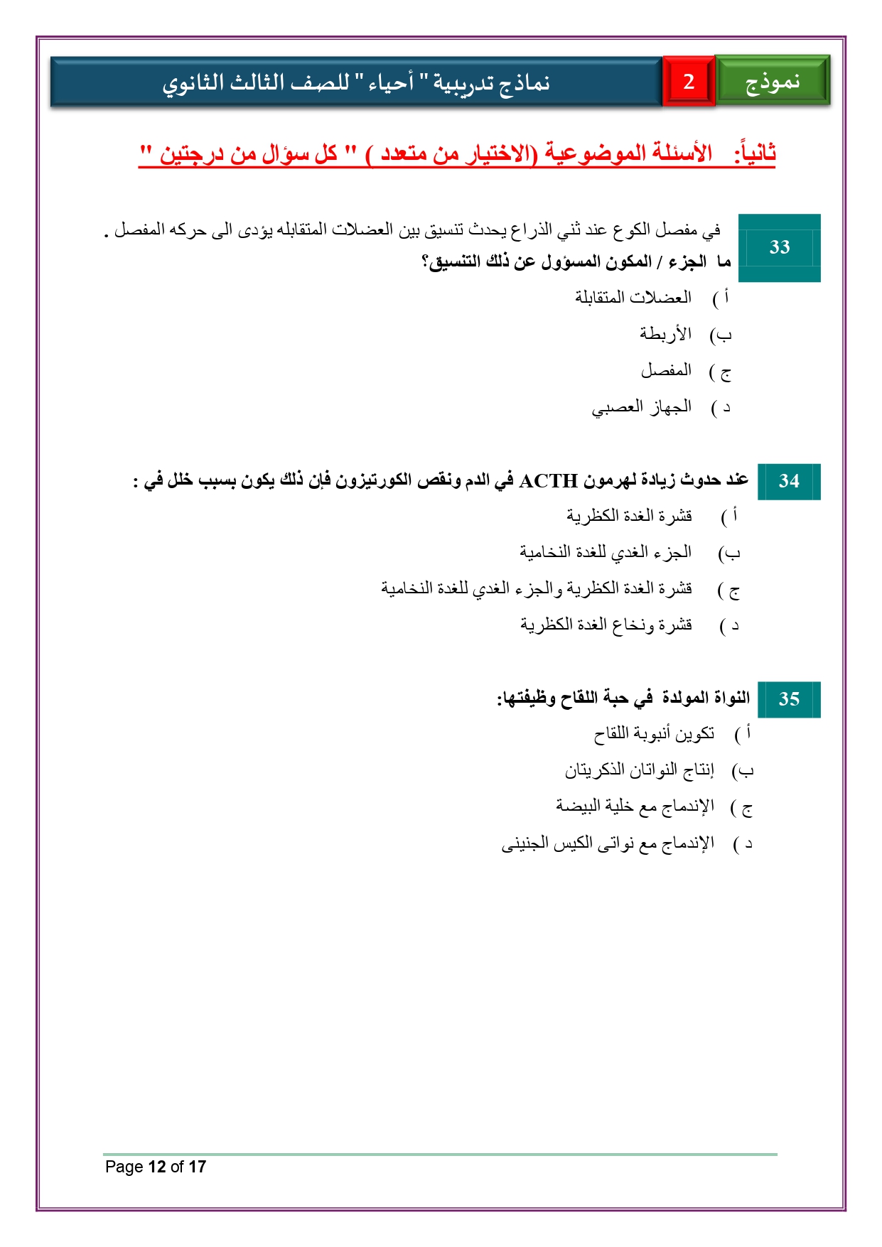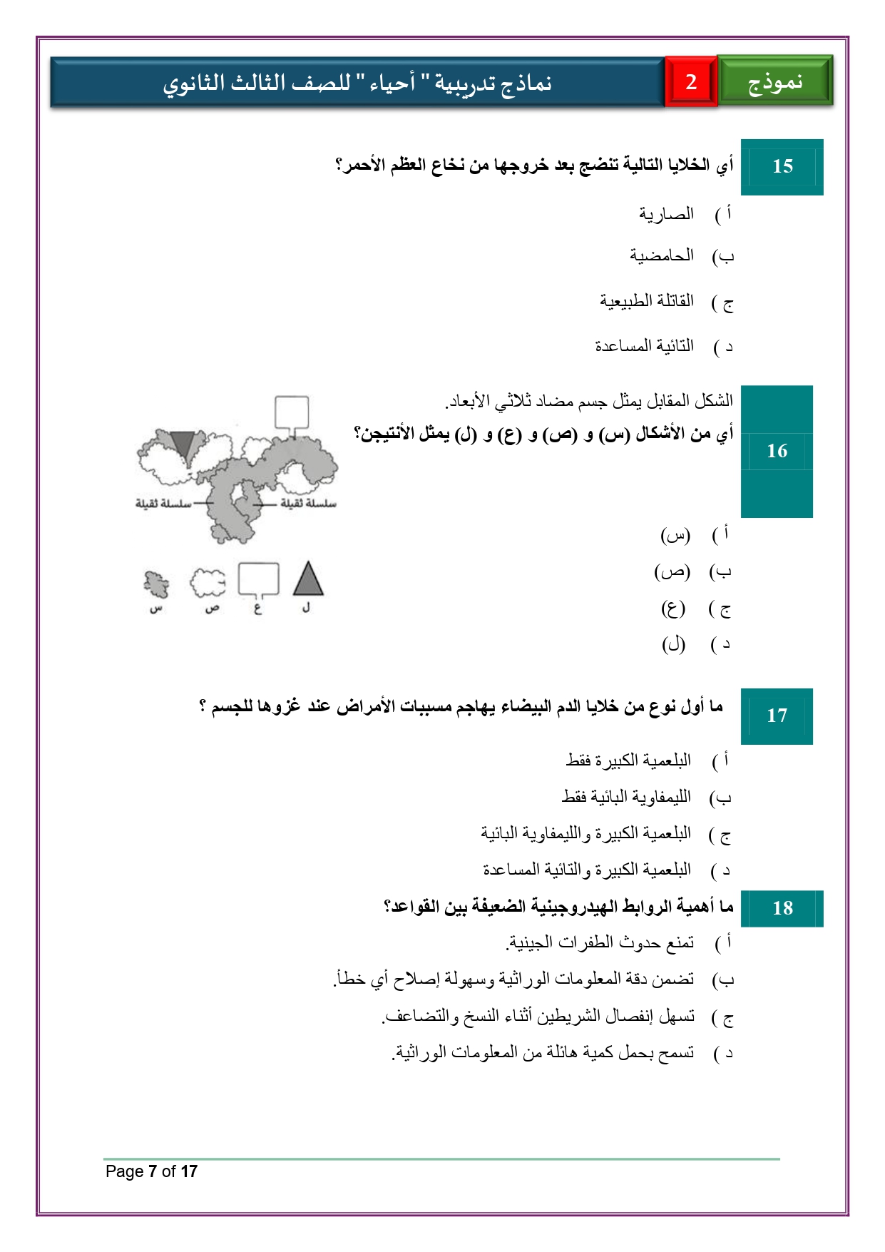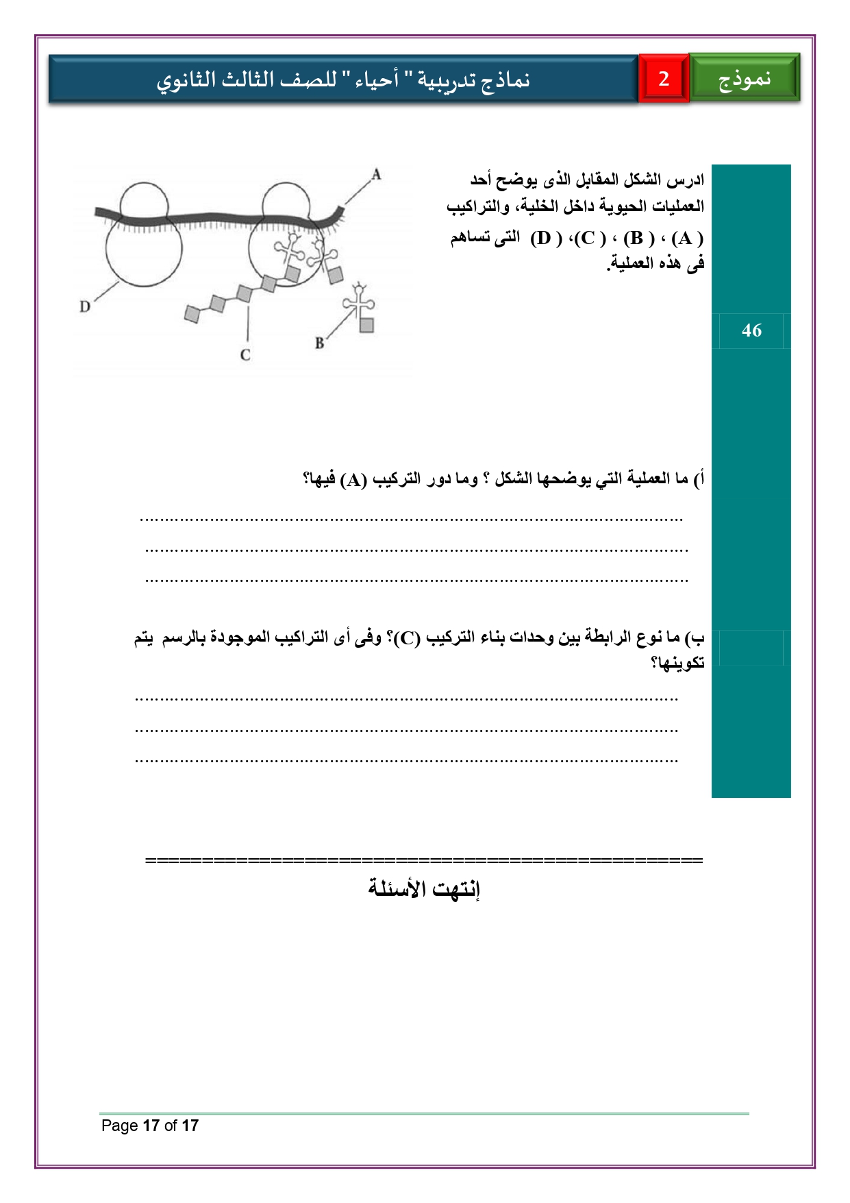 - حل النماذج الاسترشادية أحياء للصف الثالث الثانوي 2026 لغات والعربي