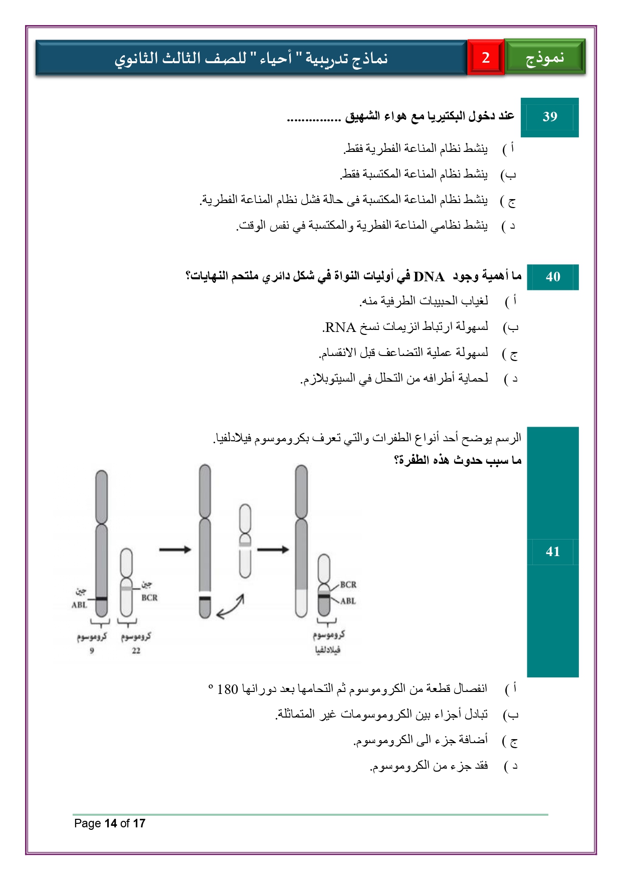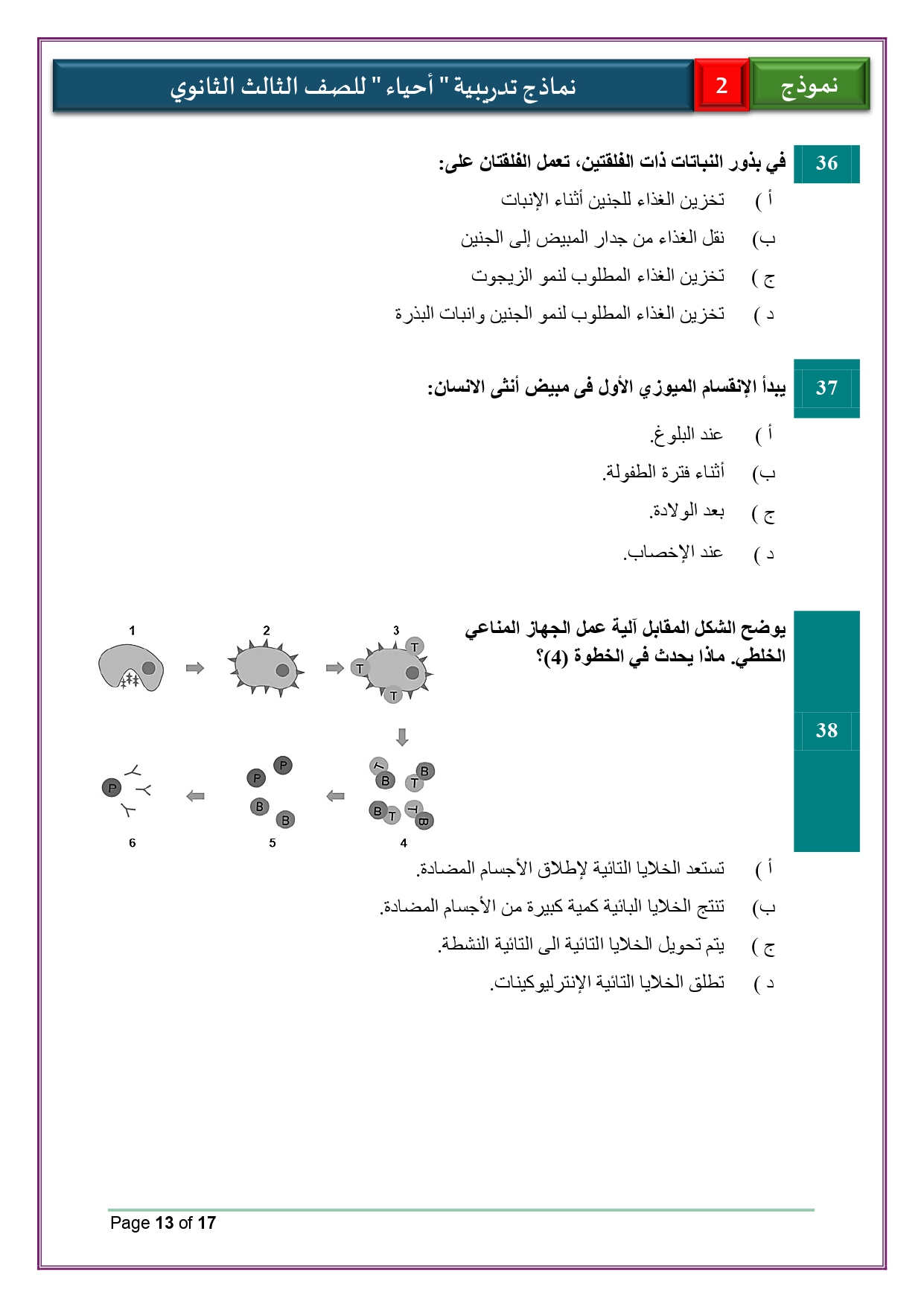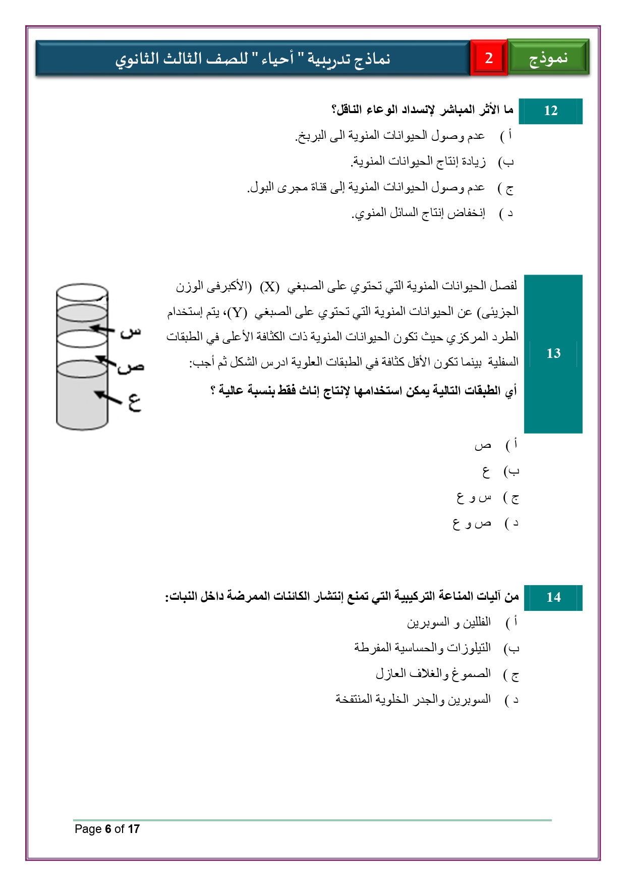 - حل النماذج الاسترشادية أحياء للصف الثالث الثانوي 2026 لغات والعربي