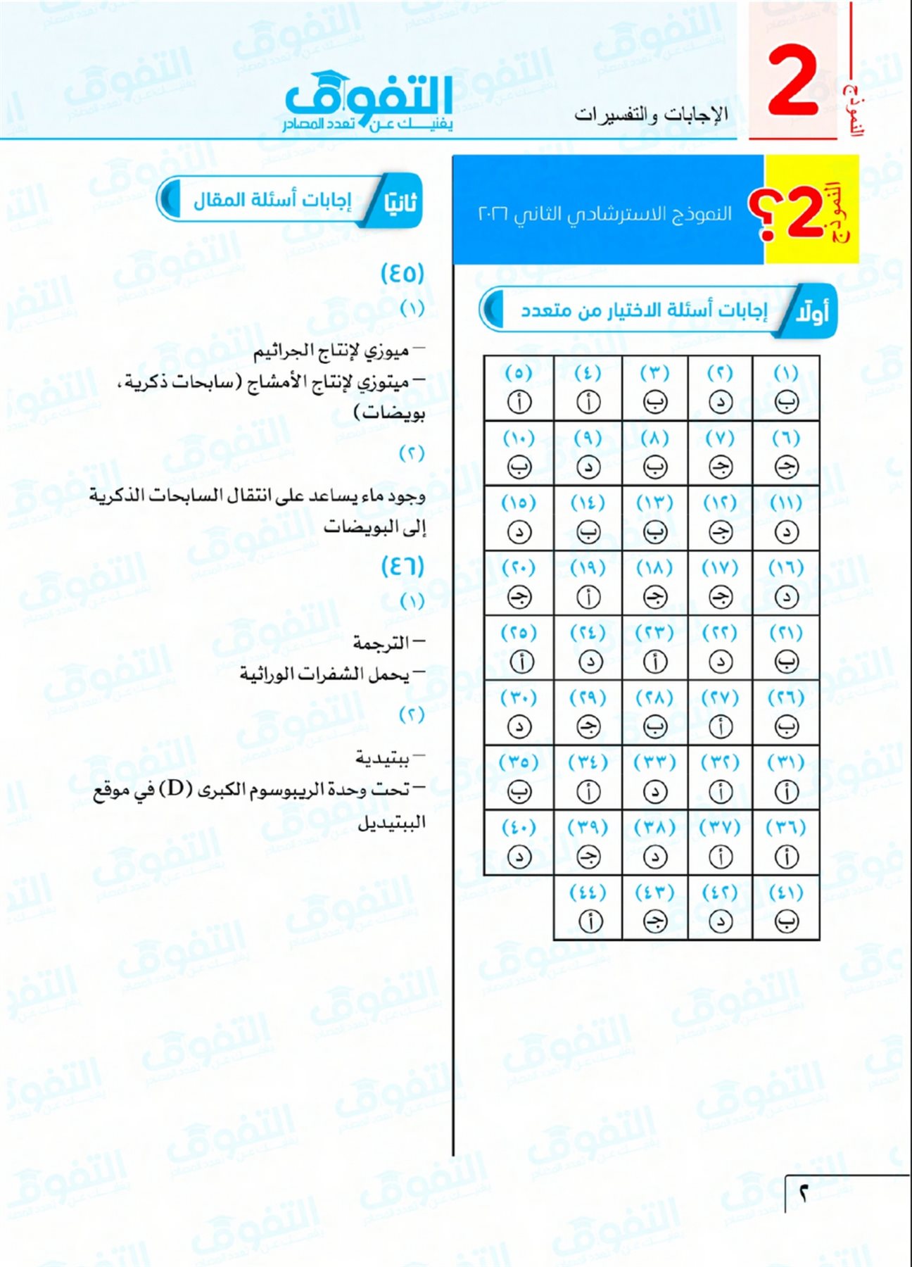 حل النموذج الاسترشادي الثاني أحياء 2026