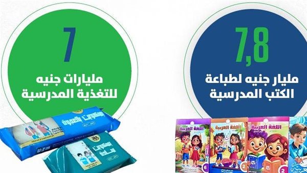 أوضح وزير المالية، أنه تم تخصيص ٧،٨ مليار جنيه بالموازنة الجديدة لطباعة الكتب الدراسية بالتعليم قبل الجامعي، و٧ مليارات جنيه للتغذية المدرسية للطلاب.