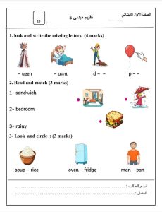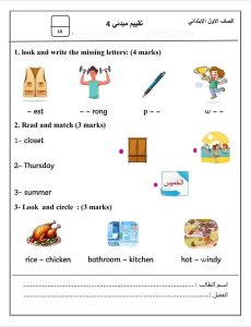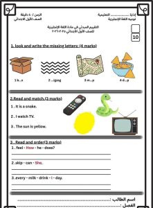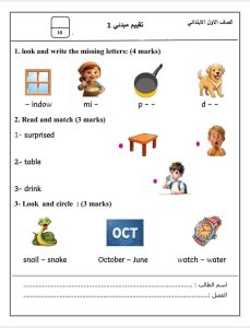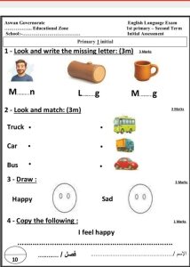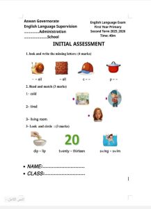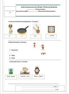 - نماذج التقييم المبدئي للصف الأول الابتدائي