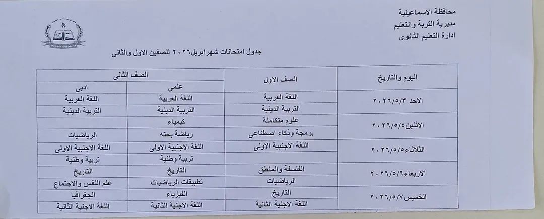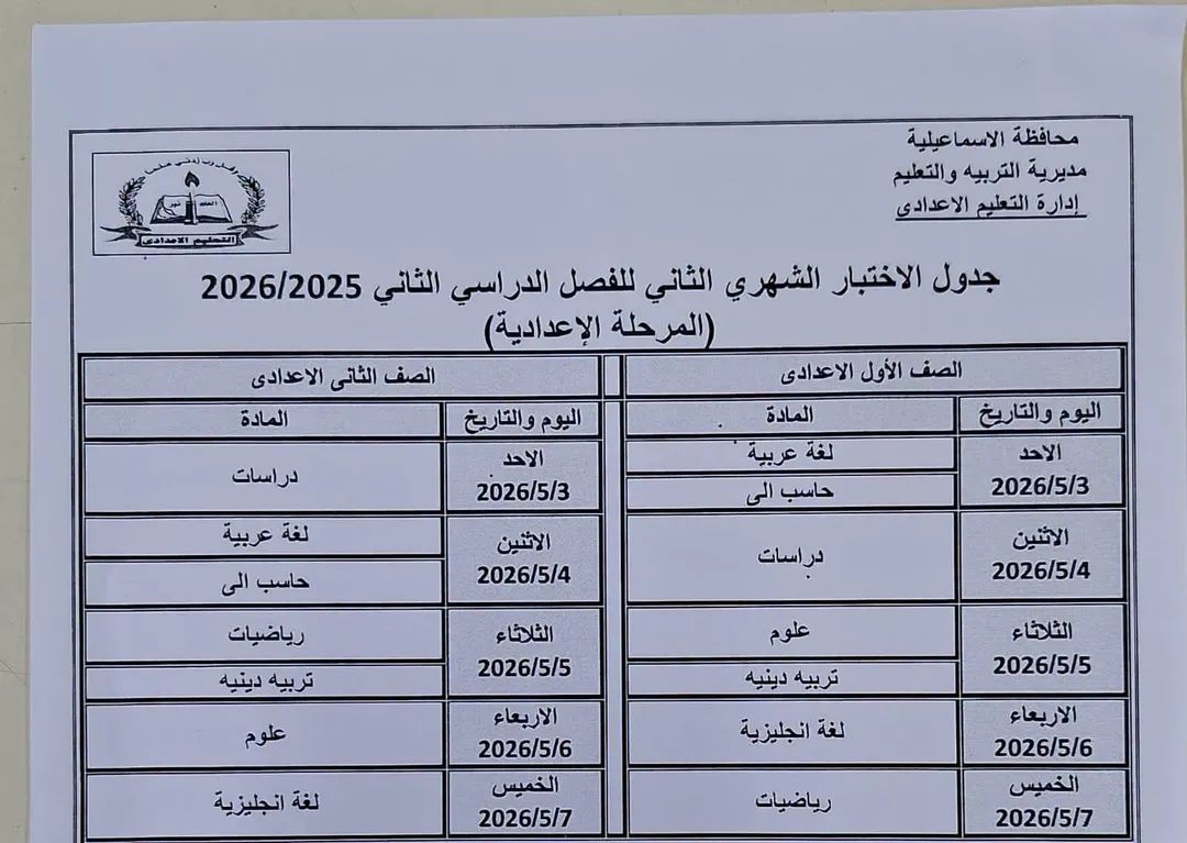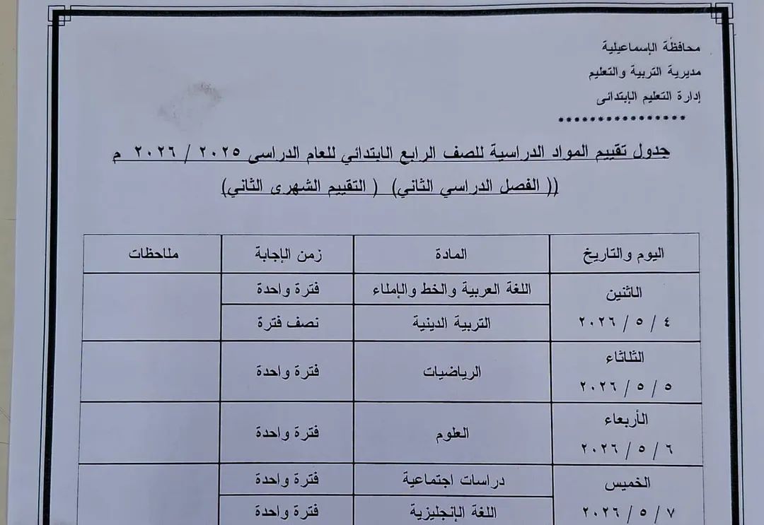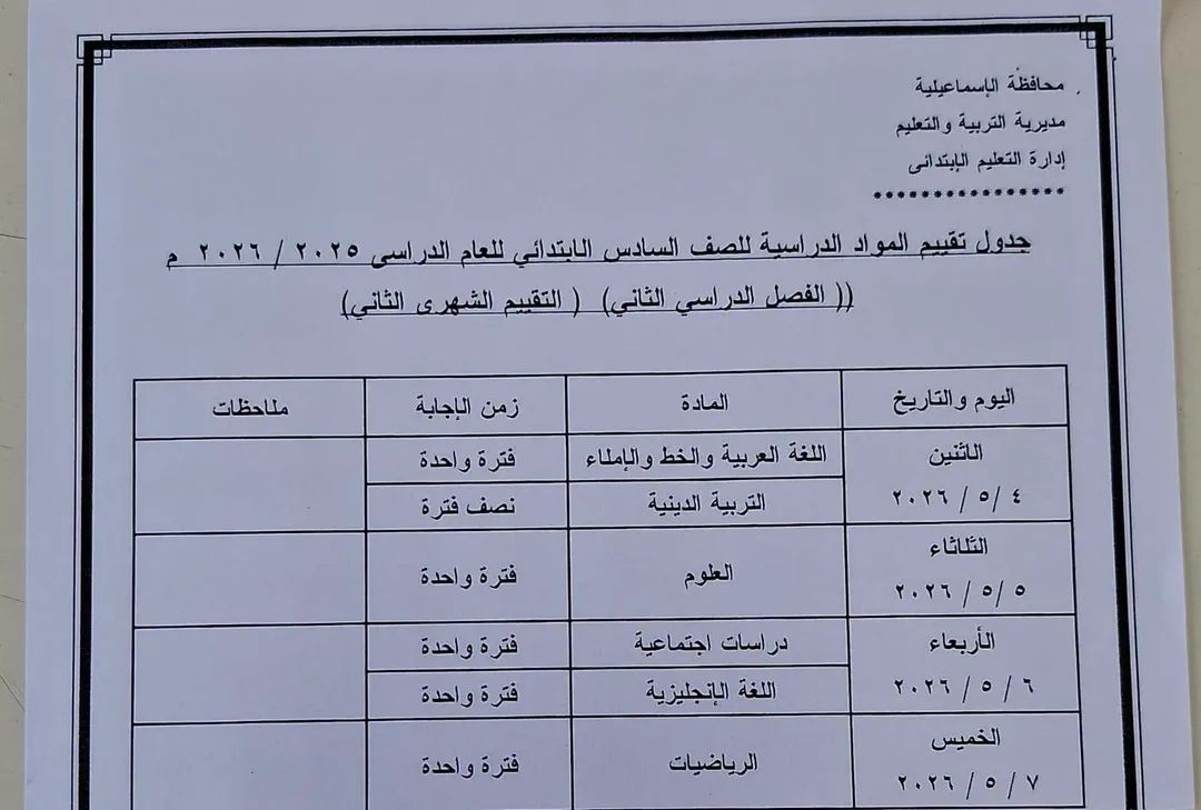 «تعليم الإسماعيلية» تعلن جداول امتحان شهر إبريل 2026 لسنوات النقل