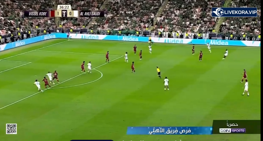 مباراة فيسيل كوبي والأهلي بث مباشر في دوري أبطال آسيا حيث انتهى الشوط الأولى بتقدم الياباني على السعودي بهدف مقابل صفر على ملعبه وسط جمهوره وعلى أراضيه وبدأ الشوط الثاني والأهلي استطاع أن يتعادل بشق الأنفس.