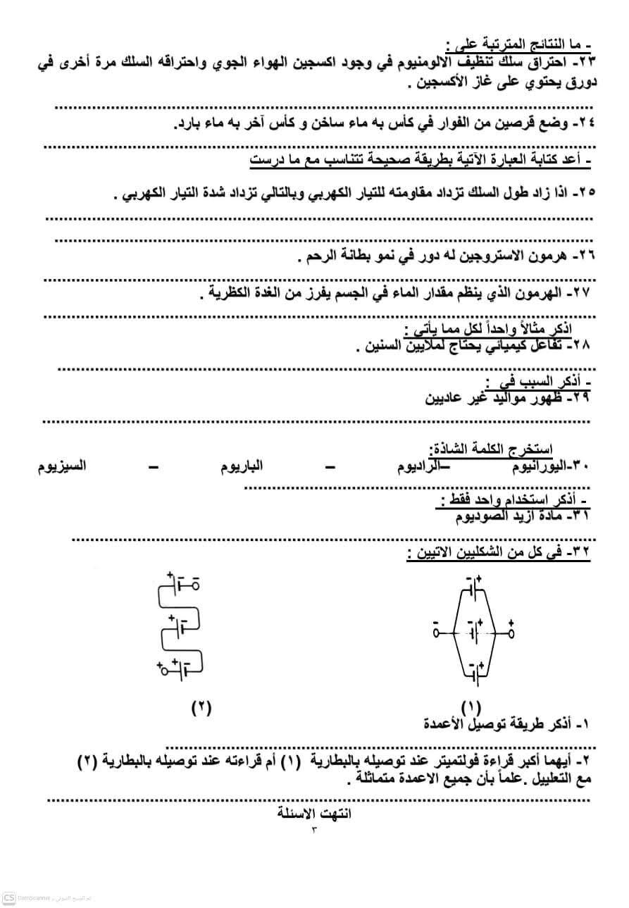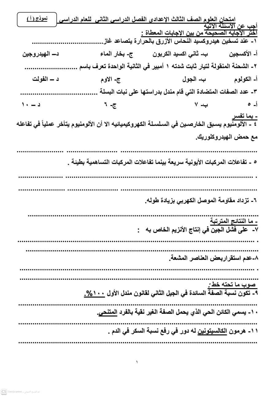 إتاحة نماذج العلوم للشهادة الإعدادية 2026