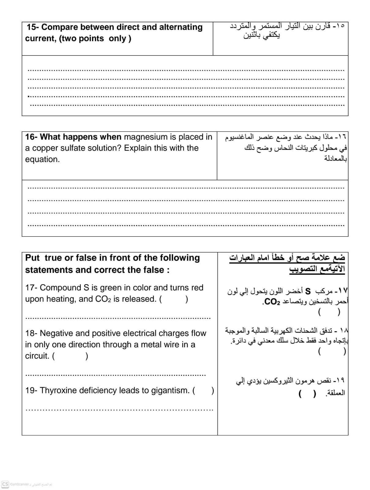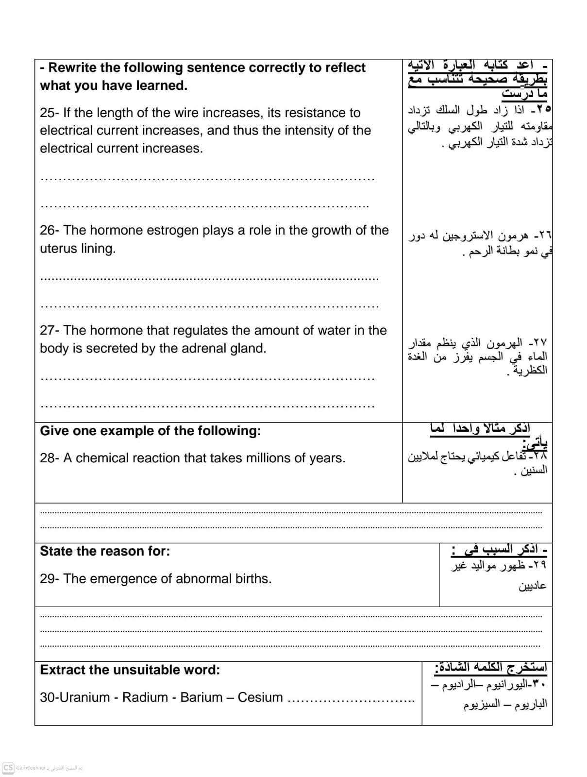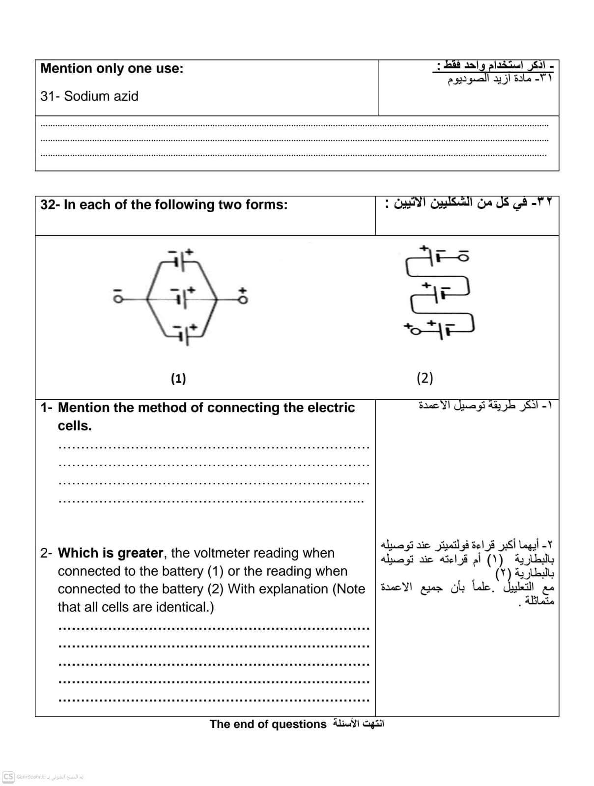 نموذج استرشادي لامتحان مادة العلوم science للشهادة الإعدادية الترم الثاني