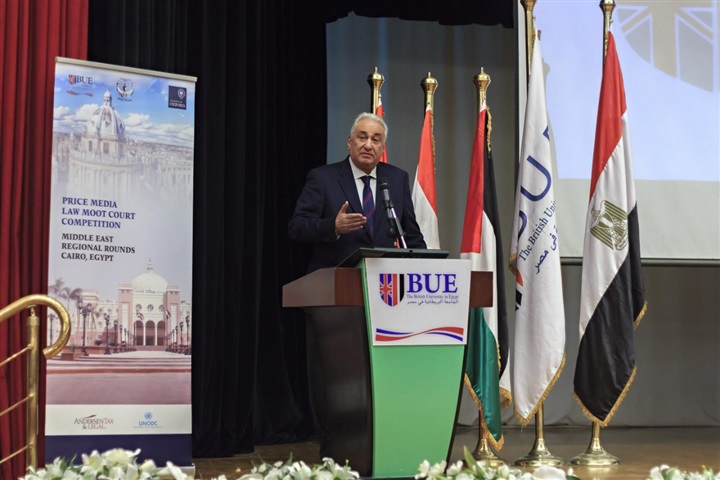 وشارك في حفل الإفتتاح المستشار عبد العزيز سلمان نائب رئيس المحكمة الدستورية، وأحمد فتحي خليفة المنسق الإقليمي للمسابقة في الشرق الأوسط وممثل لمركز القاهرة الإقليمي للتحكيم التجاري الدولي (CRCICA)، وماهر ميلاد اسكندر المدير التنفيذي والمؤسس لمكتب أندرسن تاكس أند ليجل للمحاماة، بالإضافة لمشاركة السيدة نيفينا كريفوكابيك ممثلا عن جامعة أكسفورد المنسق الدولي للمسابقة، وعمداء كليات الجامعة البريطانية.