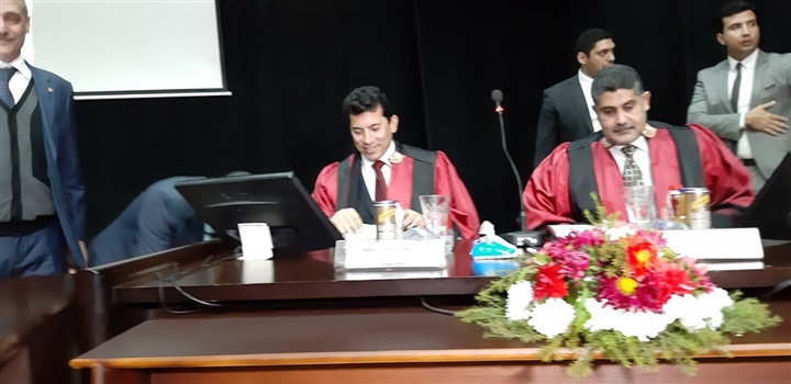 وتضم لجنة المناقشة والحكم الدكتور أشرف صبحى وزير الشباب والرياضة أستاذ الإدارة الرياضية بقسم الإدارة الرياضية بكلية التربية الرياضية للبنين جامعة حلوان مناقشا ورئيسا، والدكتور عمرو مصطفى كامل الشتيهى أستاذ الإدارة الرياضية بقسم الإدارة الرياضية والترويج الرياضى بكلية التربية الرياضية جامعة طنطا مناقشا.