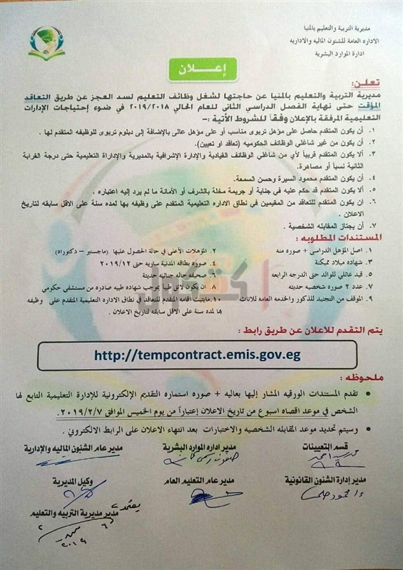 إلى أن مديرية التربية والتعليم بالمنيا والإدارات التابعة لها، أعلنت فتح باب التقدم