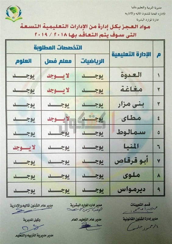 حصل موقع "كشكول" علي بيان بمواد العجز في المعلمين بإدارات محافظة المنيا، حيث كشفت عن وجود عجز كبير في معلمى الرياضيات بمعظم الإدارات، يليها معلمى الفصل، ثم مادة العلوم.