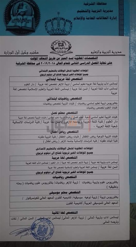 تعرف علي التخصصات المطلوبة بتعاقدات المعلمين في الشرقية