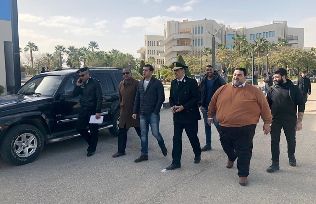 استقبل المستشار حسن شندي، مستشار رئيس مجلس أمناء جامعة مصر للعلوم والتكنولوجيا، والمشرف على الأنشطة، وكمال عبد الله مدير أمن الجامعة، وفدا أمنيا رفيع المستوي، على رأسه اللواء رمزي إبراهيم، مساعد الوزير لجنوب الجيزة، وخالد المراكبي، مدير الحماية المدنية بأكتوبر، واللواء محمد إحسان، وكيل الإدارة العامة لمرور الجيزة، والعميد أشرف، مدير إدارة شئون الخدمة، والعميد هشام عبد الصمد، والرائد أحمد كامل، الحماية المدنية، واللواء أبو سريع أحمد، مأمور قسم أول، وإسلام المهداوي، رئيس مباحث أكتوبر، والمقدم سعيد حازم، للتأكد من جاهزية الجامعة لاستضافة حفل الهضبة عمرو دياب، في 22 فبراير الجاري، على استاد كرة القدم، وللاطلاع على خطط التأمين واللمسات الأخيرة لضمان خروج الحفل بشكل حضاري.