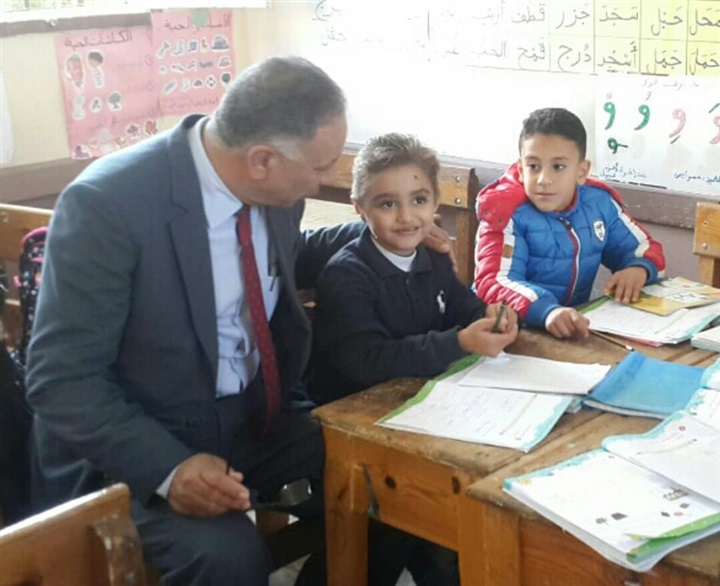الابتدائية المشتركة على بوابة المدرسة فقرر احالته للتحقيق ، مشدداً على انضباط المدارس