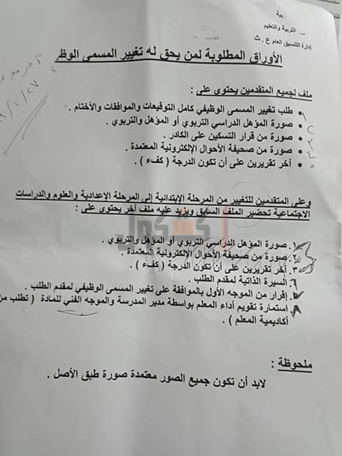 بالصور .. ننشر المستندات المطلوبة لتغيير المسمي الوظيفي للمعلمين