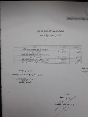 كلية الإعلام بالجامعة بعد انتهاء المدة القانونية لاختيار المرشحين السابقين.
