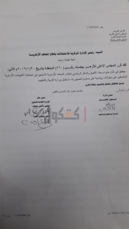 وافق المجلس الأعلى للأزهر على تطبيق درجات الحافز الرياضي، على الطلاب المتفوقين رياضياً بالشهادة الثانوية.