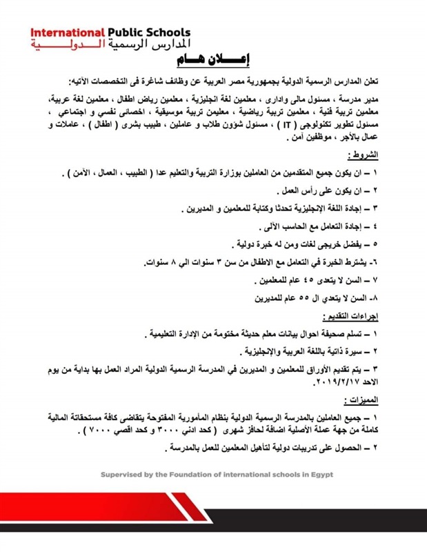 مدارس بالصور.. المدارس الرسمية الدولية تعلن عن وظائف شاغرة محمود الشريف الأحد 17/فبراير/2019 - 07:23 م 2/17/2019 7:23:00 PM طباعة أعلنت المدارس الرسمية الدولية عن وظائف شاغرة في فروعها المختلفة، وحددت الشروط والتخصصات والأوراق المطلوبة واستمارات للتقديم.إليكم التفاصيل: facebook twitter whats شارك