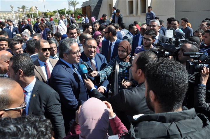 وأكد رئيس الجامعة أهمية هذه الندوات في إستثمار طاقات الشباب وتوجيهها بشكل إيجابي ونشر ثقافة الحوار بينهم، وقد شكر الدكتور خالد العناني وزير الآثار قيادات جامعة حلوان على دعوتهم له لزيارة الجامعة حيث أنها فرصة جيدة للالتقاء بالسادة أعضاء هيئة التدريس والطلاب، كما أشاد بالدور الهام للدولة في تمويل المشروعات الأثرية من تطوير المتاحف وترميم الآثار المصرية القديمة حيث تمتلك مصر كم هائل من الآثار.