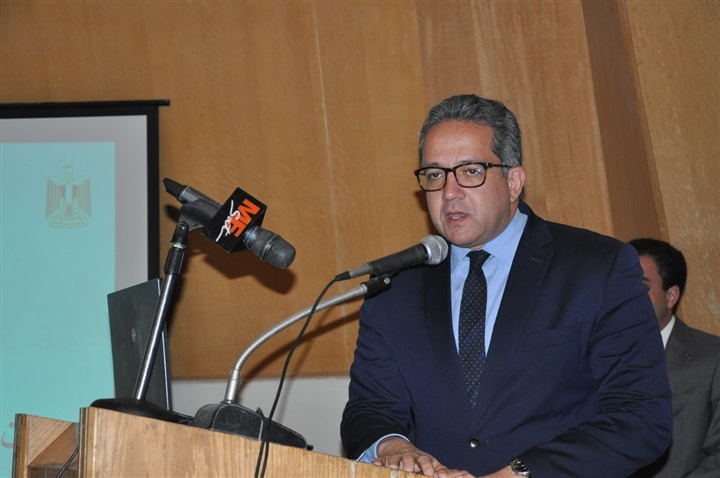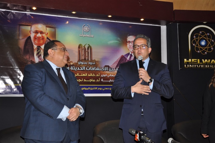 وزير الآثار يستعرض أهم الاكتشافات الحديثة في ندوة بجامعة حلوان